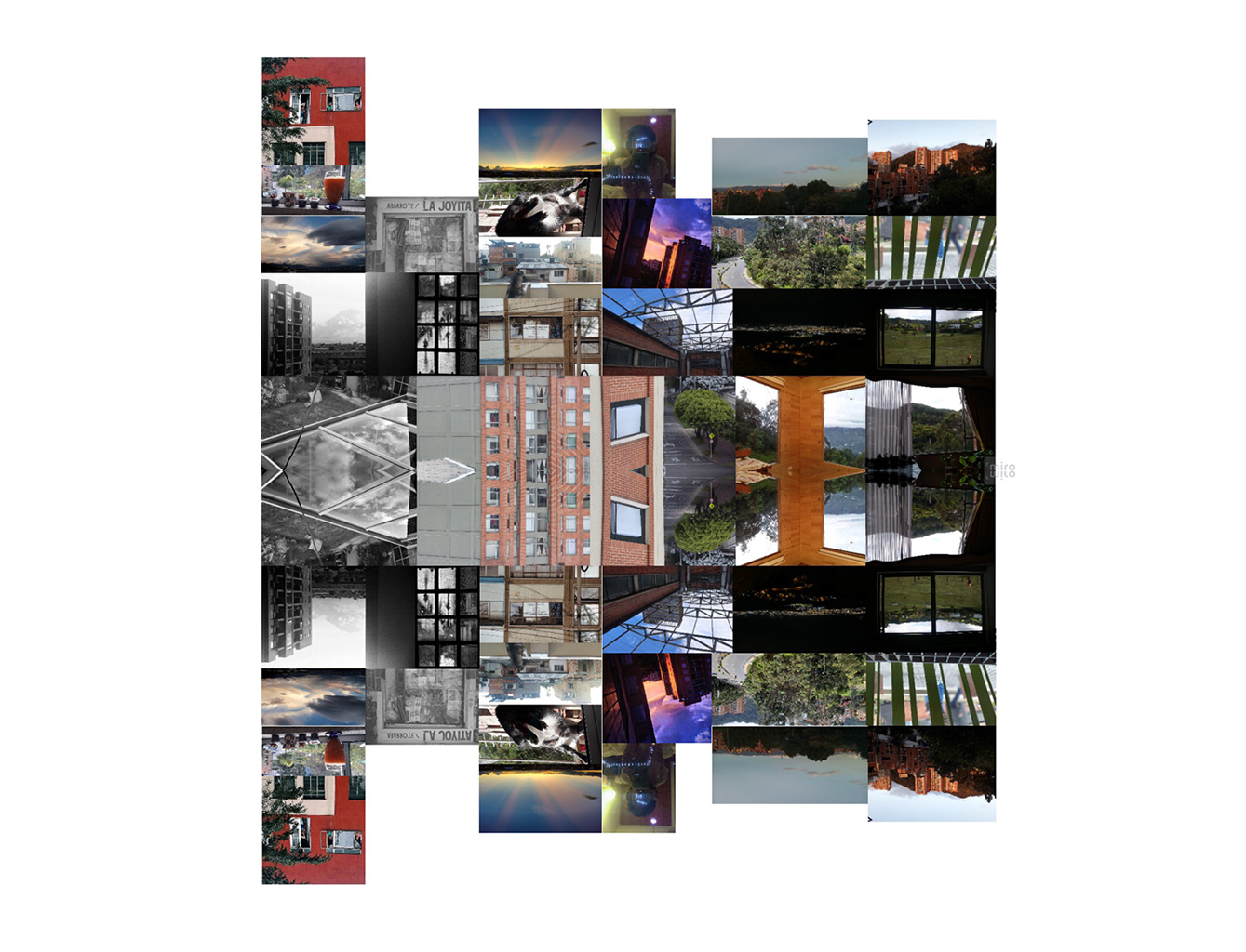 Ese fragmento de mundo que envió cada participante se juntó con otras imágenes para crear una imagen colectiva a través de un collage que el Semillero de Fotografía de la Facultad de Artes elaboró: