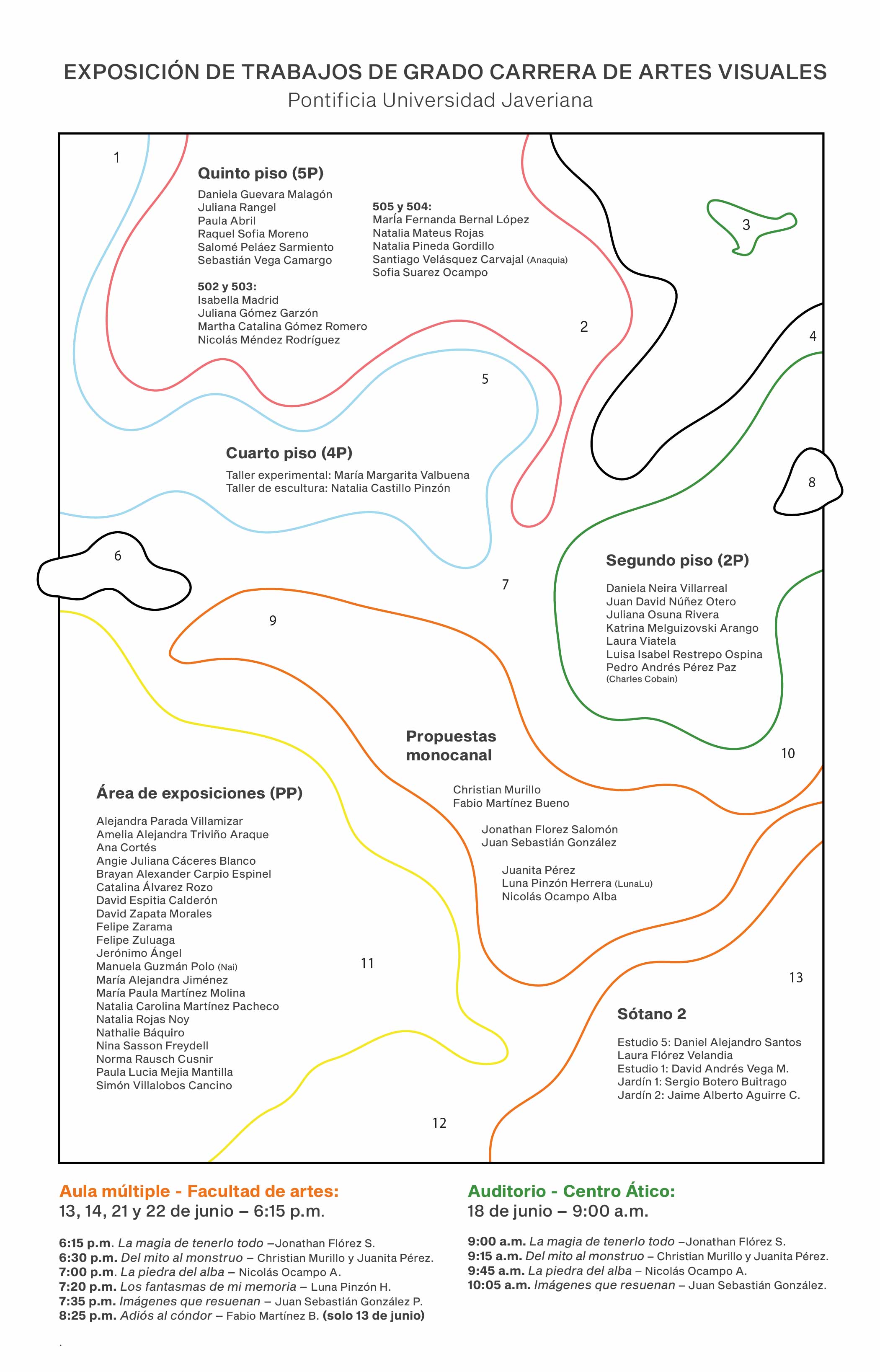 Esta exposición nos convoca bajo la esperanza de emerger en un sin fin de posibilidades del arte en Colombia. Por este motivo, y durante este periodo, 57 artistas estamos presentes dándole cuerpo al rito, en el cual trascendemos de la vida estudiantil a la vida profesional. Con él, nos enfrentamos a la mirada del otro, esa tan esencial cuando se crea, y tan retadora cuando se habla de lo que consideramos importante.