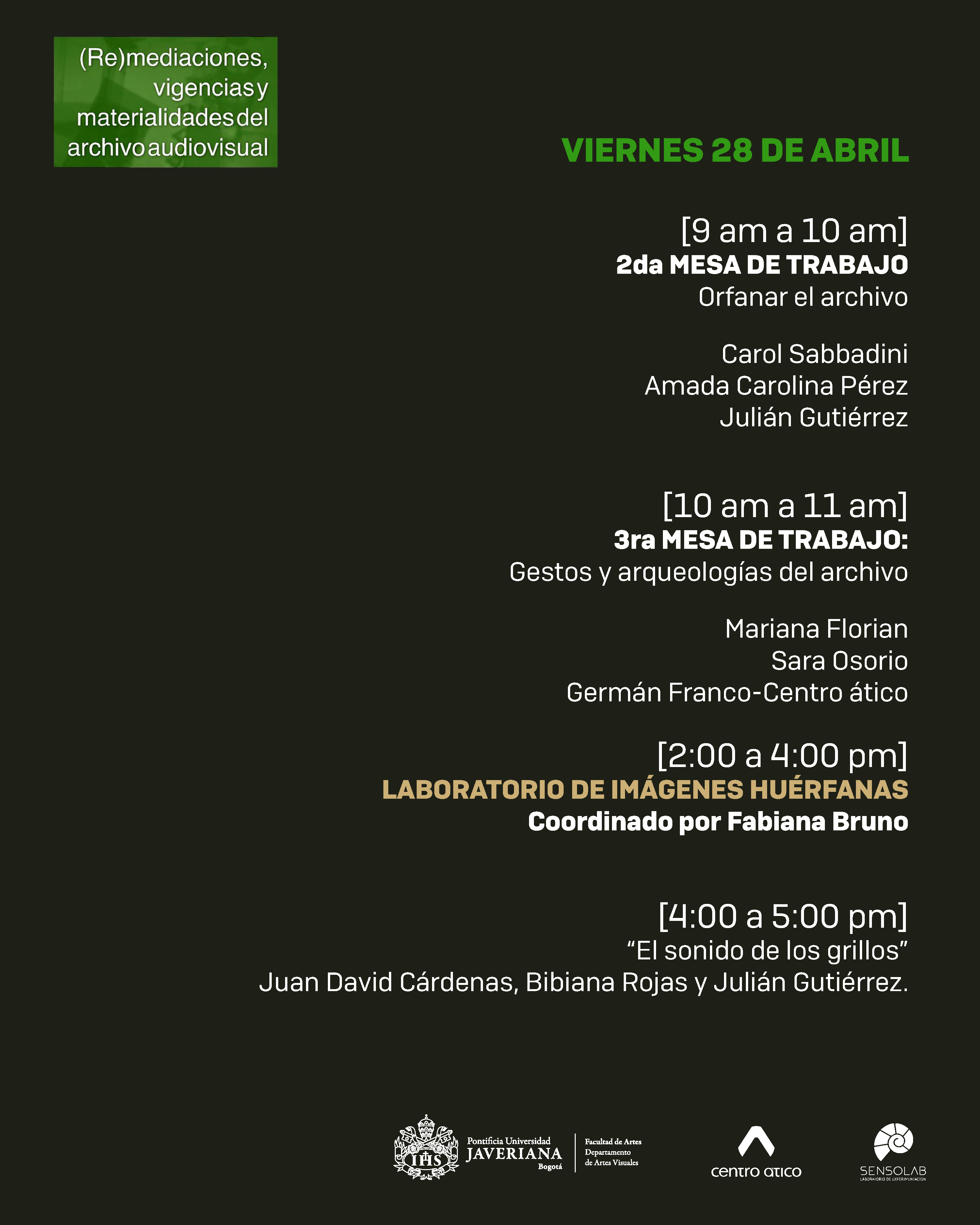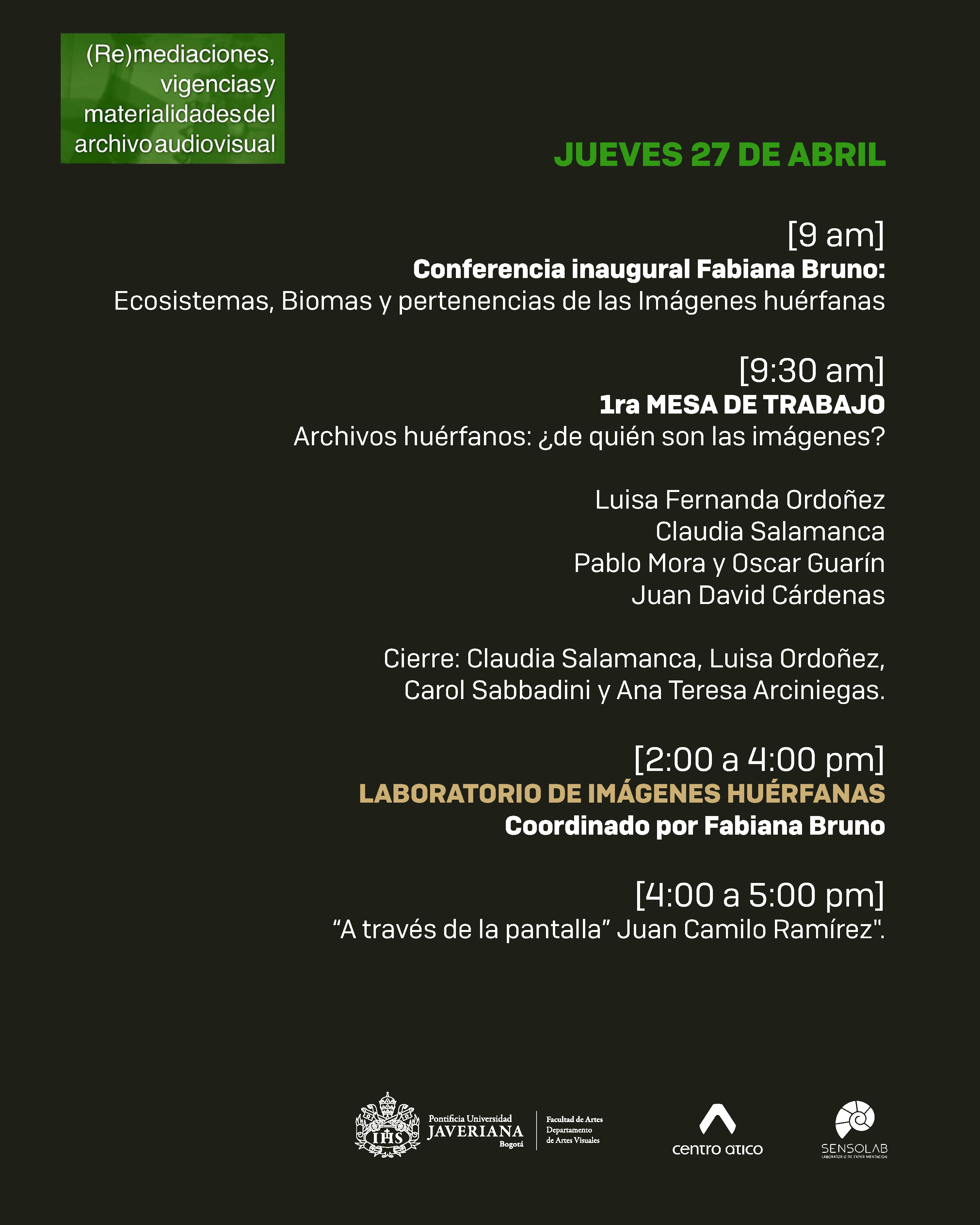 Este I simposio Internacional surge como resultado del proyecto de investigación “Archivos huérfanos y prácticas post fotográficas: la adopción de imágenes” desarrollado por el Departamento de Artes Visuales de la Facultad de Artes y SensoLab –Laboratorio de experimentación– de la Facultad de Ciencias Sociales de la Pontificia Universidad Javeriana.